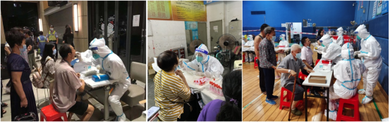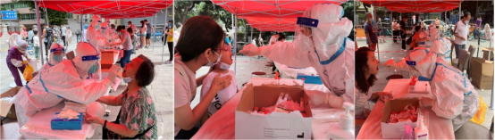 6月4日下午6时左右,核酸采样应急队伍共50人在半小时内迅速集结完毕,在高效的工作调配、动员之后,分赴海珠区体育中心、素社、佳滨苑等采样点开展工作,凌晨1点左右结束采样工作。