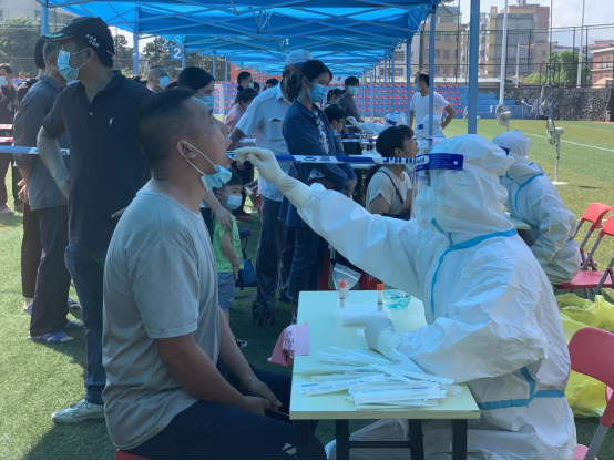 盛夏之夜,明月当空,他们发扬特别能吃苦、特别能战斗的精神,连夜战斗至凌晨4点多,每个人都重复了上百次相同操作,但却没有松懈,顺利地完成了这一批市民的核酸检测工作。