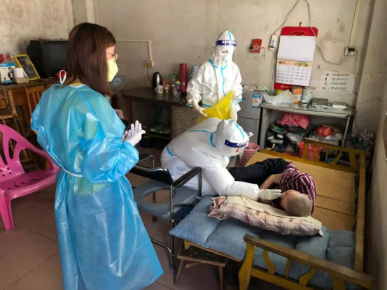 在海塱村、河东龙社区、高峰村等一些核酸采样点,有不少市民因行动不便、卧病在床等原因无法前往采集现场进行核酸检测,医护人员主动提出协调人手,上门为市民进行核酸采集。这些市民居住地方分布零散,大部分没有电梯,医护人员只能穿着厚厚的防护服艰难爬楼梯上去。