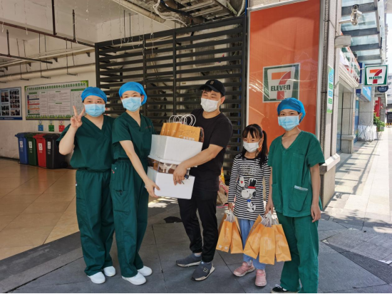 在核酸采样点现场,一些爱心企业、现场检测的市民朋友陆续为医护人员送上奶茶、蛋糕和水果,还有些市民将精心煲好的靓汤送给现场的医务人员,不少队员都被深深地感动。社会各界拧成一股绳,同心携手共同战胜疫情。