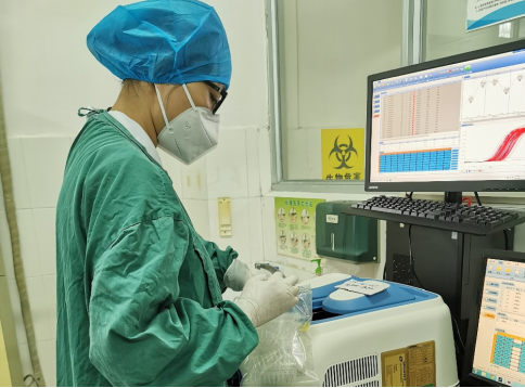 面对突然激增的新冠检测标本量,检验医学科主任李小燕带头冲在一线,在参与核酸检测的同时,不断与同事们优化新冠检测的最佳方案,为广大老百姓提供快速准确的核酸检测报告,为广州从化疫情防控提供了保障。以PCR组组长李榕娇为代表的众多新冠检测小组成员,更是放弃了许多休息和陪伴家人的时间,始终冲锋在一线、战斗在一线,常常通宵达旦奋战。