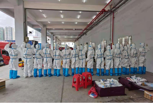 志愿服务队队员不敢丝毫耽搁,迅速对接了解采集规则,上厕所、搬运物资、穿戴防护用具、指引人群按规定采集样本。