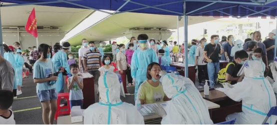 李婉玲第一时间主动请缨,参与到支援核酸采样队伍中,可她似乎忘记了家里还有两个孩子在等着她,大儿子要参加今年的高考,小儿子才3岁多。在太平镇核酸采样点,李婉玲顾不上喝水休息,不停加快采样速度,她说:“市民顶着烈日排长队,担心他们会中暑,特别是老人和孩子,只能默默告诉自己速度快点再快点。”
