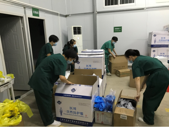 护理部科护士长钟赛琼主要负责防护服、采集用品、手消毒液、酒精等物资保障。在接到需派100人支援白云区核酸采集时已经是凌晨两点多,时间紧、任务重,钟赛琼与其他同事顾不上梳洗就飞奔赶回医院,按照一人一份标准,把物品整理分拣好。细心负责的她,每次队员出发前,都会再三叮嘱大家要照顾好自己,认真检查物品,做好自身防护。