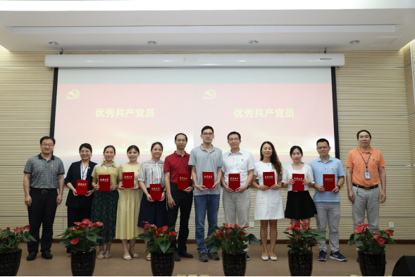 庆祝大会在庄严的国歌声中拉开帷幕。党委书记陈旭坚带领8名预备党员上台宣誓,全体党员集体重温入党誓词,在场党员面向党旗庄严宣誓。