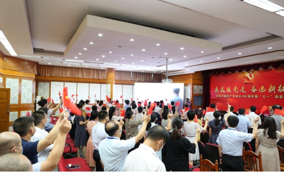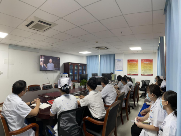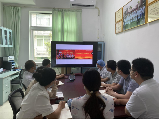 7月1日,中西医结合医院组织近600名教职员工,分设11个会场收听收看庆祝中国共产党成立100周年大会现场直播。