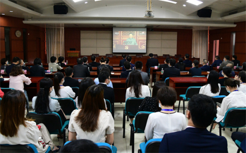 医院全体院领导、机关全体管理干部一起收看了现场直播,各科室党支部、学生处各党支部、退休党员等分别在各科室示教室共同观看了直播。
