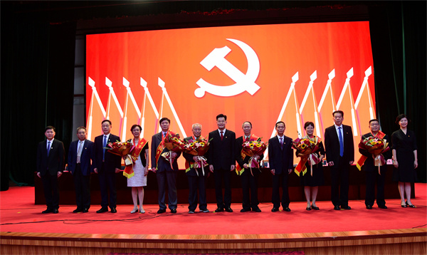 宣誓完毕,党委副书记、纪委书记王立军同志宣读荣获省教育系统、学校和医院模范、优秀共产党员,模范、优秀党务工作者和模范、先进基层党组织表彰通报。医院全体党委班子成员向受表彰的单位和个人代表颁奖。