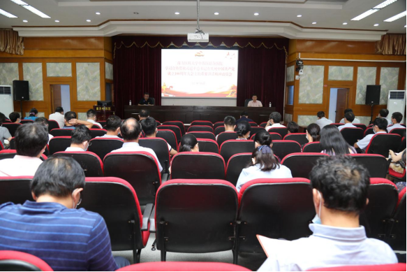 7月8日下午,中西医结合医院召开学习贯彻习近平总书记在庆祝中国共产党成立100周年大会上重要讲话精神动员会,对医院学习宣传贯彻工作进行动员部署。中西医结合医院领导,党支部书记,科室主任、副主任,护士长、副护士长,党史学习教育领导小组办公室成员等80余人参加,院长李爱民主持会议并组织学习省委、全省教育系统和学校动员会议精神,院党委书记严冬作动员讲话。