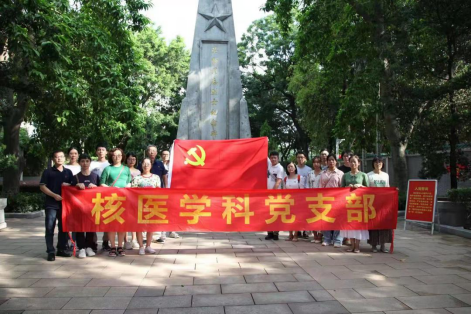 当天下午,核医学科党支部前往佛山市党史学习教育基地——吴勤烈士陵园,追忆革命历史,传承红色记忆。吴勤烈士先后组建了南浦农团军、南海县第四区农民协会,组织农民开展革命运动,并参加广州起义外围战斗。抗战时期,他又投身抗日救亡运动,为珠江敌后抗日武装斗争作出了重要贡献。支部党员们向烈士碑行默哀礼并敬献花束,向烈士致以深切缅怀和崇高敬意。