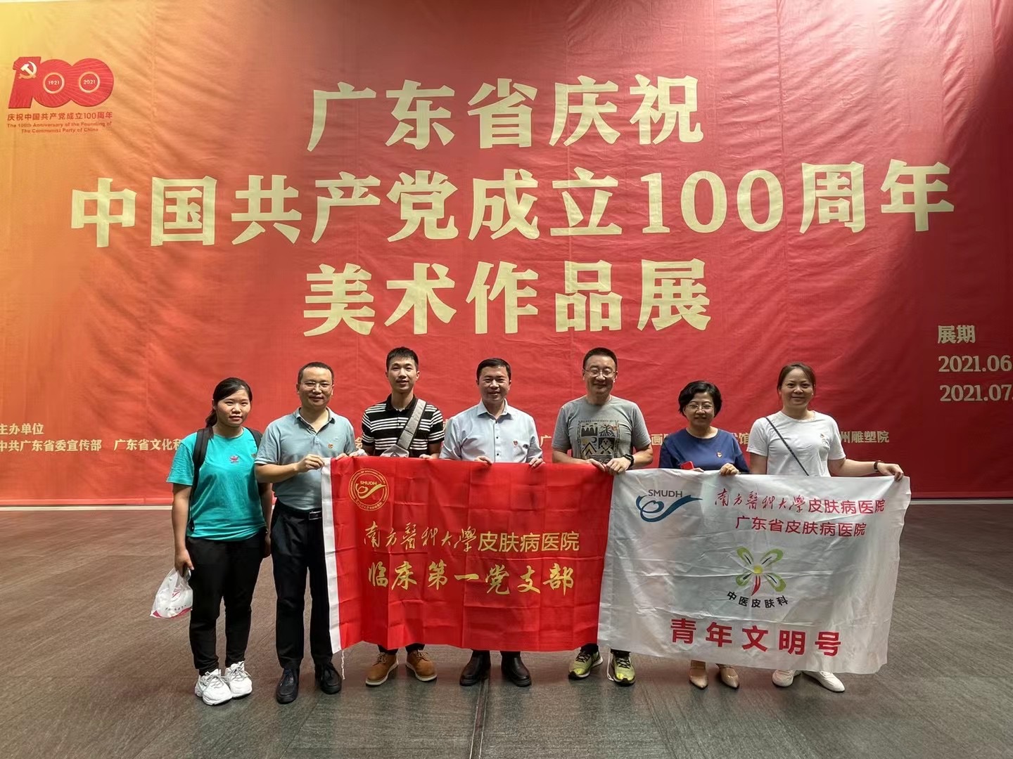 为进一步提高党史学习教育的实效,丰富学习形式,引导全院党员学深悟透党的百年历史,7月11-13日,南方医科大学皮肤病医院各党支部分批赴广东省美术馆开展“广东省庆祝中国共产党成立100周年美术作品展”主题党日活动,在艺术之美中回顾党的光辉历史。