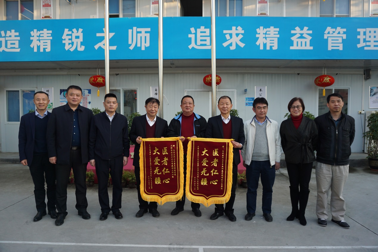 最后,门诊大楼工程项目部向五附院专项建设小组和咽拭子采集组赠送锦旗“医者仁心 大爱无疆”,感谢医院对施工人员医疗安全的全力保障。