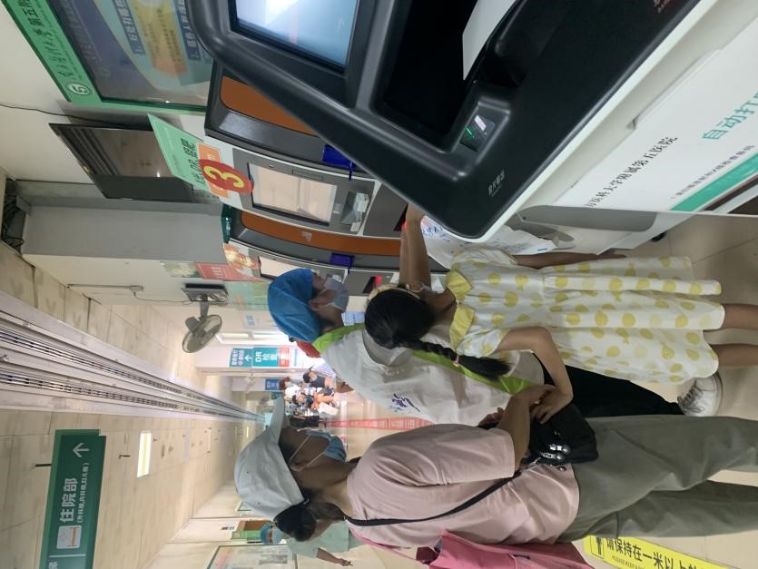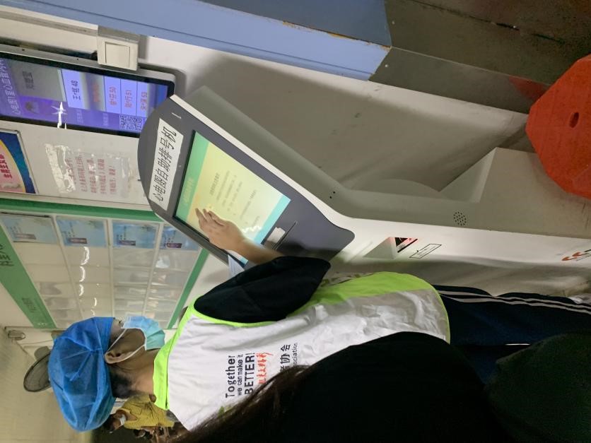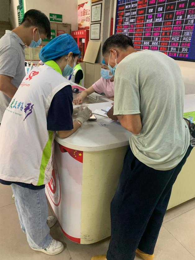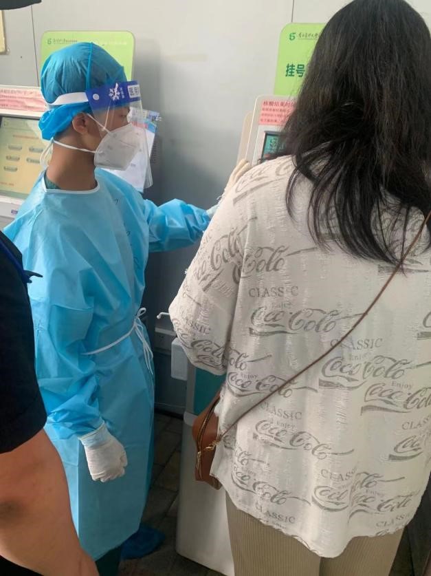 活动第二天开始,营员们进行了连续三天的志愿服务,他们分别前往门诊大厅、核酸采集点、体检中心等志愿服务点,为患者提供导医导诊、协助使用自助设备、查看健康码等服务。志愿服务虽然辛苦,但是营员们依旧不惧高温和雨天,坚守岗位,热情为患者解难题。