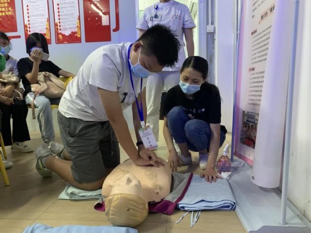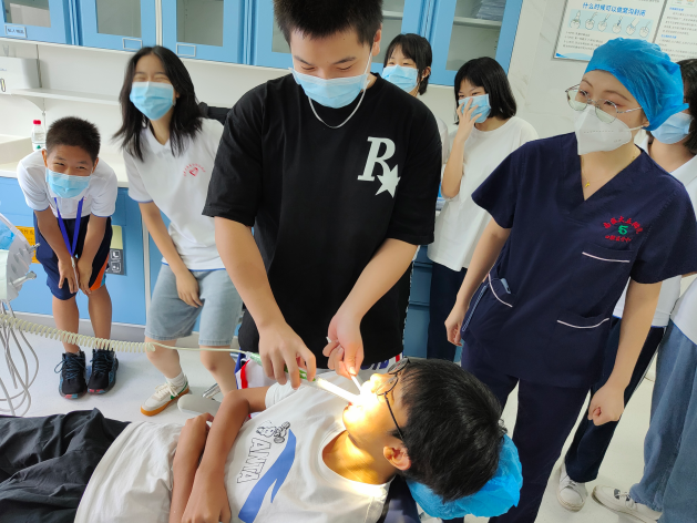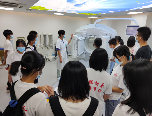 营员们还分别在检验医学科、康复医学科、急诊医学科、眼科、口腔医学中心以及核医学科等医生老师们的带领下,先后学习正确运动,视力保护和刷牙方式等健康生活技巧,以及心肺复苏、海姆立克急救法等急救技能;并参观了核医学科的大型医疗设备,在检验医学科实验室内观察红细胞、白细胞和真菌的镜下结构。在这个过程中,营员们近距离接触医学的世界,感受医学的魅力。