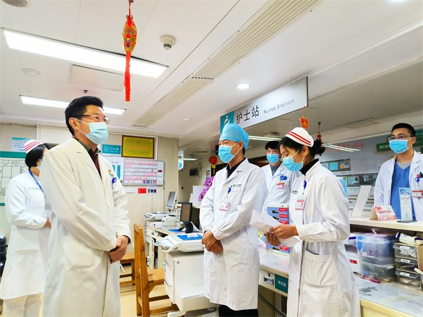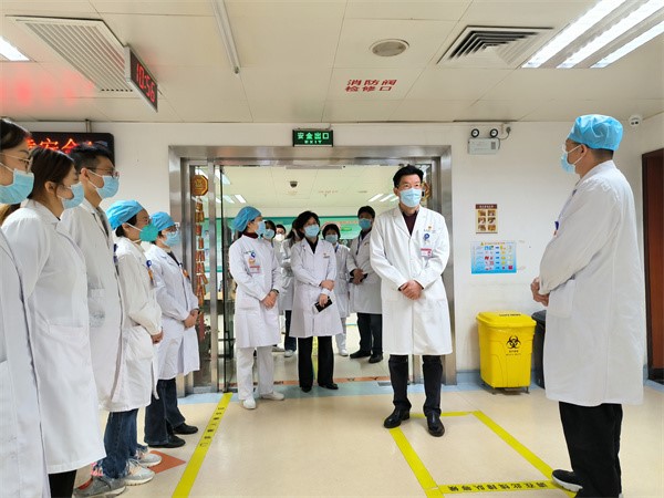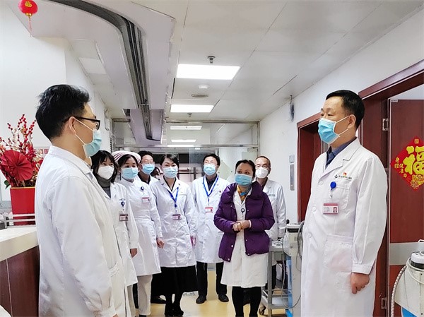 王前带队前往住院部临床科室走访慰问,向科室医务人员送去新春问候,并为新一年的工作鼓劲加油。王前全面了解了科室医护人员返岗、科室患者收容等情况,听取了科室新一年的工作计划,强调要坚持党建引领,振奋精神,群策群力,苦干实干,认真落实年度工作计划,全面提升医疗质量,力争在医教研管多方面开花结果,以永不懈怠的精神和一往无前的姿态,扎实推进医院高质量发展,实现新的跨越。