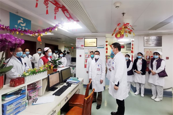 新年伊始,万象更新。全体“珠医人”以饱满的激情和昂扬的姿态,开启崭新征程。1月30日上午,珠江医院党委书记王前,院长郭洪波,党委副书记、纪委书记王立军,党委副书记、工会主席贺跃箭,副院长吴汉森、夏欧东、高凯分别带队深入临床、教学与科研一线,后勤班组,服务窗口等岗位与重点场所区域,了解春节期间各单位工作运转情况,慰问春节期间坚守岗位、辛勤工作的值班人员,并向各岗位工作人员表达新春问候,勉励大家要以咬定目标不放松的韧劲、不达目标誓不罢休的狠劲、一心一意做实事的干劲,在建设高水平医院前进的道路上,知重负重、砥砺前行,不断探索新路径、激发新动能,以高质量发展更好地服务大局、应对变局、开创新局。