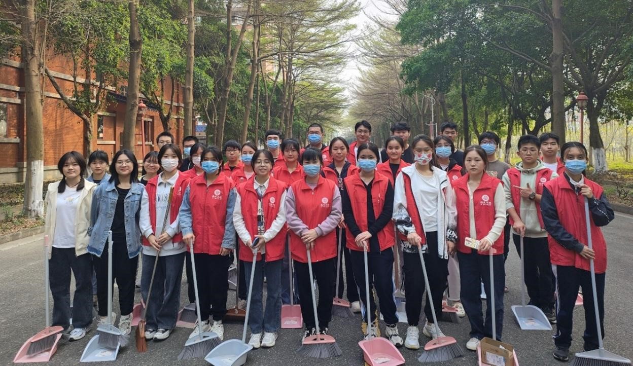 随后志愿者又到医工楼、春霖园、操场前河道开展校园环境清洁活动。学生们身着红马甲清扫着路面的杂物,仔细的搜寻着藏在绿化植物深处的碎石、纸屑、白色污染等,最后将杂物统一处理,为校园留下干净整洁的道路环境。
