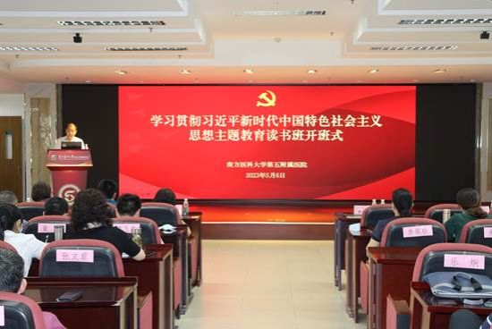 5月6日,第五附属医院举行学习贯彻习近平新时代中国特色社会主义思想主题教育读书班开班动员暨专题辅导会,全体院领导、各党支部书记、管理职能部门正副职、科室主任、护士长和党员代表参加。医院党委书记李绍波主持读书班和辅导会。