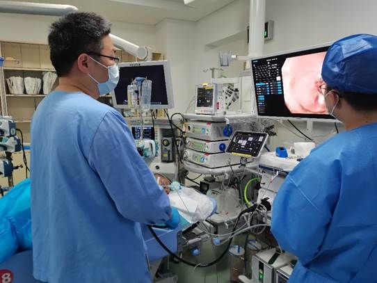 术前,消化内科组织科内会诊,确定手术方案、备血,在龚伟的指导下,消化内科副主任医师包崇举开始“攻坚”。