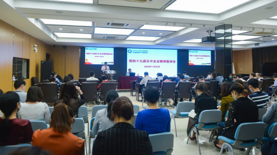 11月26日下午,第三附属医院邀请广东省委党校副教授李金哲来院作党的十九届五中全会精神主题宣讲。医院党委班子成员,各党(总)支部书记、委员及全体机关人员参会。会议由医院党委副书记程燎原主持。
