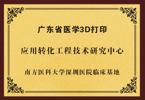 南方医科大学深圳医院整合南方医科大学全校的优质资源在深圳打造数字外科3D打印试验室,由南方医科大学基础医学院、南方医科大学深圳医院骨科中心、颌面外科、烧伤整形科、神经外科、心血管外科、泌尿外科、肿瘤科、胸外科组成,通过多学科合作,共同打造深圳市3D打印平台,研发各种3D打印技术和产品,满足深圳市医疗卫生需求。本次广东省医学3D打印应用转化工程技术研究中心临床基地落户南方医科大学深圳医院,将为深圳医院3D打印技术注入新的活力和动力,提升深圳数字骨科及3D打印技术的发展,提高深圳市医疗卫生质量,打造深圳市医疗卫生“三名工程”的名科团队。