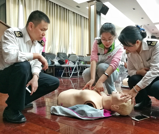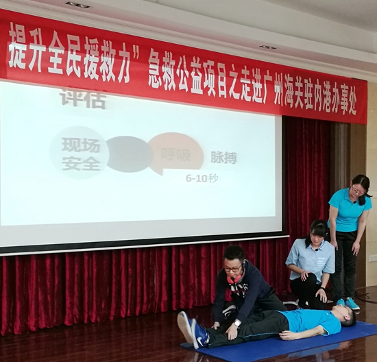 11月10日下午,珠江医院临床技能中心在广州海关驻内港办事处举行了“把握黄金四分钟、提升全民援救力”主题的急救公益培训,为海关工作人员进行急救知识及心肺复苏技能现场教学。