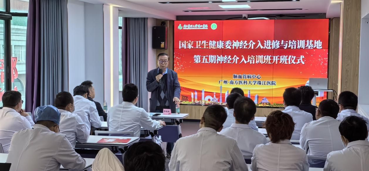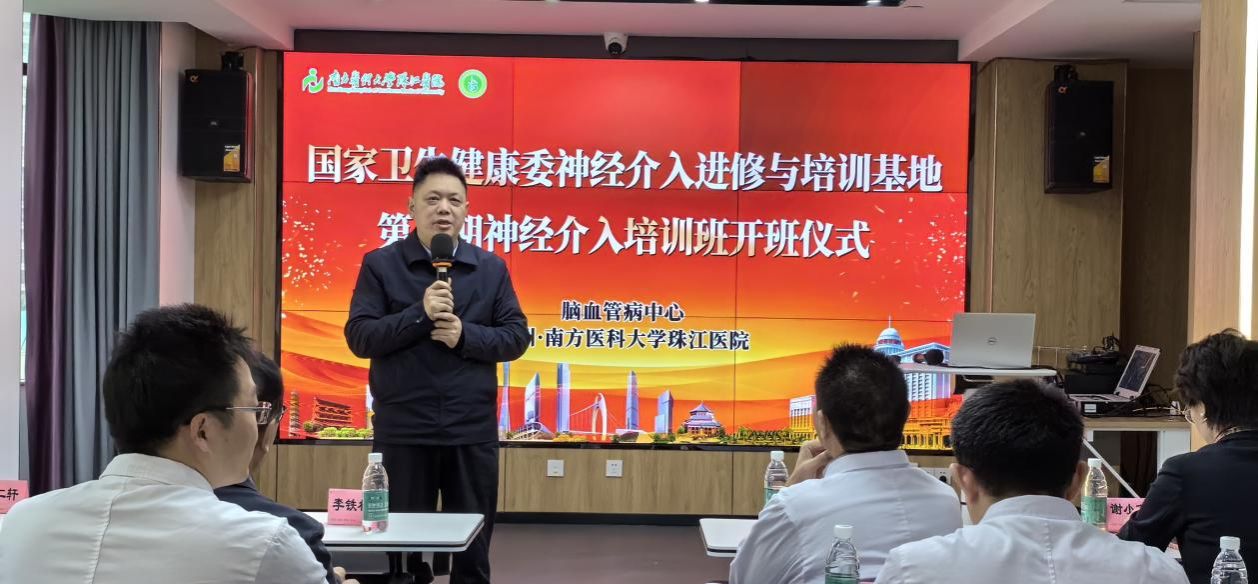 3月15日上午,国家卫生健康委神经介入进修与培训基地(珠江医院)迎来了第五期23名进修培训学员。医院党委副书记杨仁轩,教务处处长谢小燕、脑血管病中心名誉主任李铁林、中心主任段传志、护士长梁淑茵,以及培训班全体新学员参加开班仪式。仪式由脑血管病中心副主任李西锋主持。
