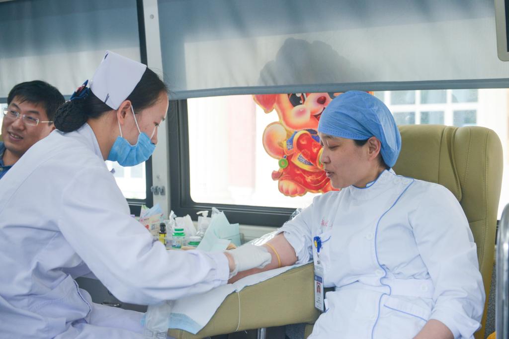当天下午2点起,从各个岗位赶来的献血人员已经排起了长队,他们有序地填好献血表格,并配合医务人员进行身体检查、血型化验、抽血,所有的流程都在工作人员的指引下井然有序地进行。整个献血活动持续了4小时,很多科室主任、护士长带头献血,总务科和保卫科多达20余名员工参加献血。