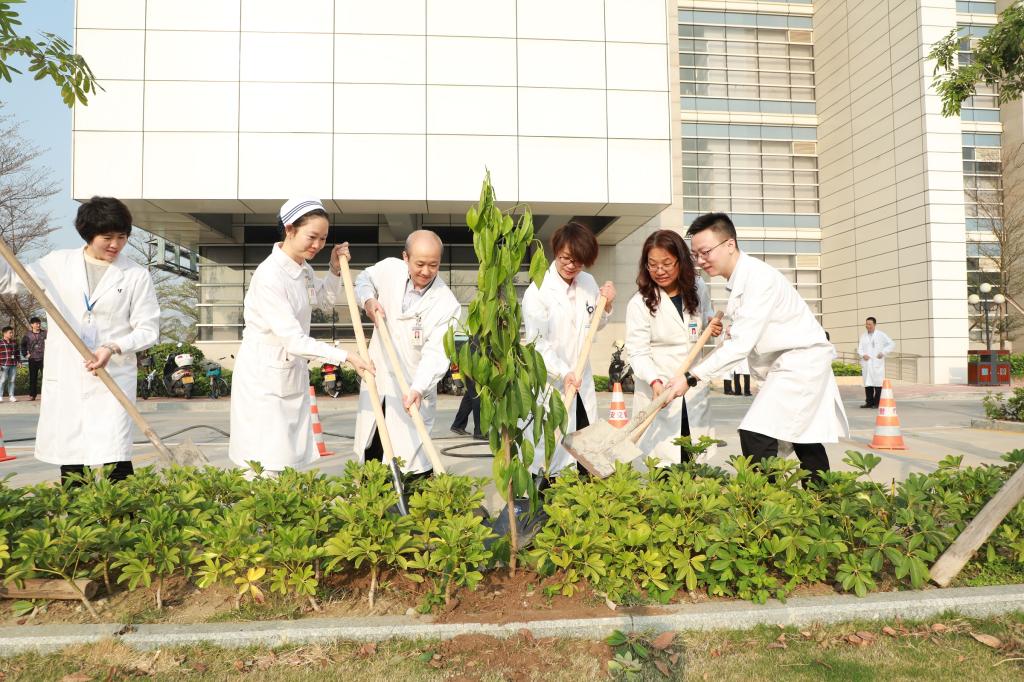 顺德医院为纪念新院全面启用,在第40个植树节到来之际,全体领导班子、职能科室正副主任、省重点专科带头人及优秀员工代表等50多人,在医院东一停车场绿化带举行了“新医院全面启用植树纪念活动”。