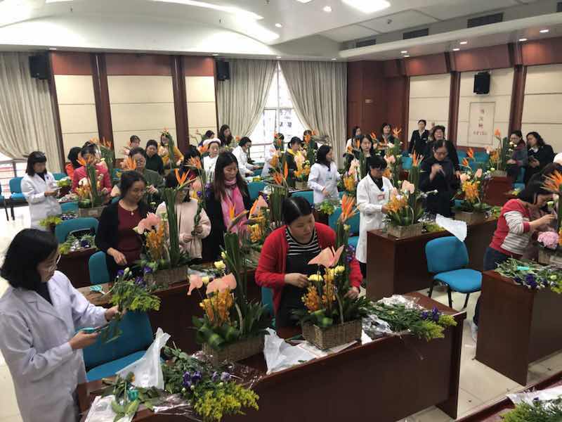 3月8日下午,珠江医院在门诊13楼会议室举行了插花讲座。通过培训老师生动形象的现场制作讲授,大家很快了解了插花制作的基本技巧、造型和插花艺术的美学鉴赏等基本知识。在场的女员工们在老师的指导下,精心构思,认真修剪,制作出了一件件春意盎然的插花作品。看着自己的劳动成果,大家高兴地说:“挺有意思的,以后可以自己在家试试,好看还能减压!”