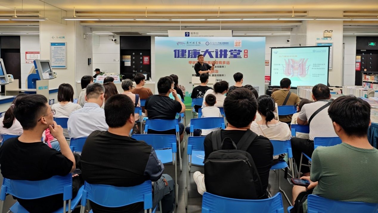 4月20日,宣传科组织健康大讲堂活动走进广州图书馆,普通外科党支部书记刘晓珑、副主任医师韩鲁浙分别以“甲状腺结节离癌症有多远”和“痔疮的防治”为题,从甲状腺结节与癌症的关系、甲状腺结节的早期诊断及甲状腺结节的治疗等大众密切关注的几个方面进行了十分详细与专业的讲解,也从专业的角度给大众介绍了肛门的解剖与生理、痔病的发生机理、痔病的诊断和鉴别、痔病的预防和治疗等。