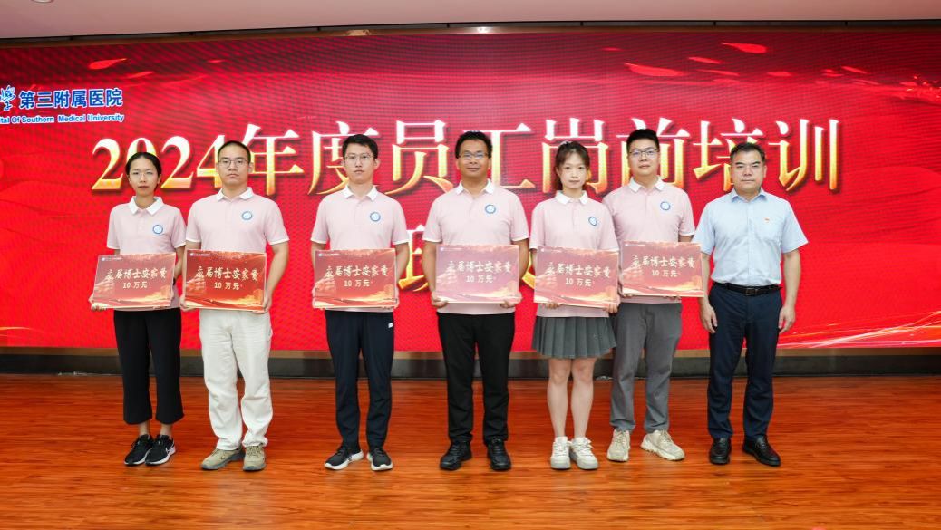 开班仪式上,院领导为优秀应届博士研究生代表授予安家费,激励他们为医院发展贡献力量。