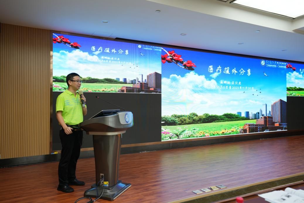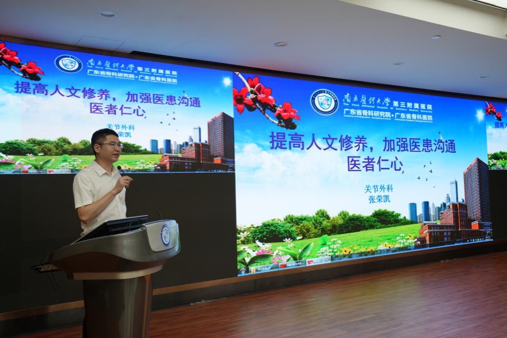 援藏代表关节外科主任医师张荣凯以“医者仁心”为主题诠释了医生的责任与担当。援外代表麻醉科副主任医师宋伏虎分享了他在多米尼克的援助事迹,激发了新员工们的爱国情怀与职业荣誉感。
