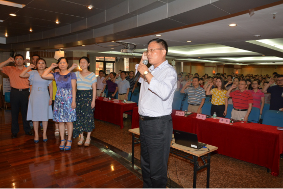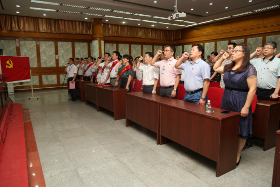 会议在雄壮激昂的国歌声中开幕。党委副书记、院长蔡道章首先带领来自不同岗位的10余名新党员庄严宣誓加入中国共产党,全体老党员也一起重温了入党誓词。