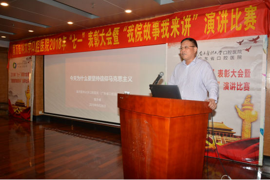 为庆祝建党97周年,表彰先进,推动医院工作的发展,6月28日下午,口腔医院在总院举行2018年“七一”表彰大会,表彰优秀党员60名、优秀党务工作者8名、先进党支部6个以及第二批“服务明星”14名。