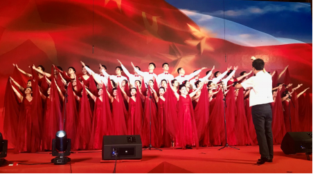 妇产科、儿童耳鼻喉科党支部联合演唱《我和我的祖国》。