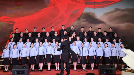 康复医学科、中医科、ICU、泌尿外科党支部联合演唱《保卫黄河》。