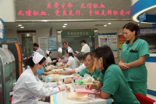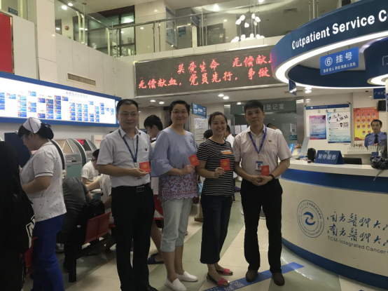 各党支部发起了“无偿献血,党员先行”争做先锋的号召,党支部书记带头,党员群众积极参与无偿献血。不少临床医护人员在繁忙工作之余赶到现场献出热血,随后立刻返回岗位继续工作。
