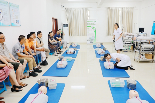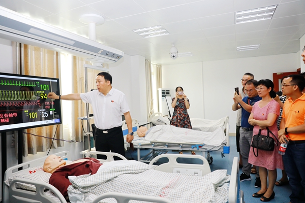 随后,广东外语外贸大学教育技术中心第二党支部一行人员前往珠江医院临床技能中心参观,在田京的带领下,参观了中心各临床专科的技能培训平台,听取模拟医学教育的国内外现状和发展前景的介绍,开展了“情系师生 提升技能”应急救助技能学习活动。