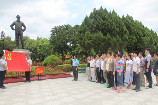 本次活动首先参观了红宫红场,在讲解员的带领下,认真学习瞻仰了彭湃同志坚定的共产主义信仰和英勇无畏的革命精神。彭湃早年抛弃贵族家庭,从日本留学归国后毅然走上艰苦革命的道路,不畏艰难、视死如归。带领当地人民进行了不屈不挠的革命斗争,先后举行了三次革命武装起义,不仅解放了海丰和陆丰县城,开辟了海陆丰革命根据地,而且成功地创建了被誉为“中国第一个苏维埃”的海陆丰县苏维埃政权,在中国革命史上写下了光辉灿烂的一页。党员们在彭湃铜像前庄严宣誓,表达自己将不忘初心,牢记使命,坚定为人民服务的决心。