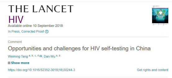 9月10日,由皮肤病医院与美国北卡大学教堂山分校合作创立的岭南-北卡性传播感染研究培训中心(简称“岭南北卡”)研究团队在国际知名期刊《THE LANCET HIV》杂志(IF=11.3)上发表了题为“Opportunities and challenges for HIV self-testing in China”的文章。