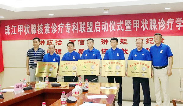 近日,珠江医院核医学科与6家医疗单位核医学科缔结专科联盟,启动广东省首个“珠江甲状腺核素诊疗专科联盟”建设。珠江医院党委副书记贺跃箭、广东省医学会核医学分会主任委员徐浩、广东省核医学质控中心主任蒋宁一与各联盟单位负责人出席大会。