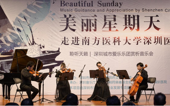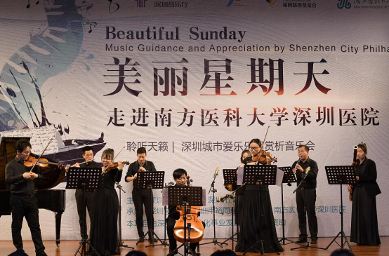 本场迎新音乐会是深圳医院第三届“美在鹏城•爱在南医”文化艺术节的活动之一,由深圳音乐厅主办,深圳城市爱乐乐团、深圳市裕同慈善基金会、深圳医院承办。深圳城市爱乐乐团是一支朝气蓬勃的乐坛生力军,本次演奏的曲目丰富多彩,有古典也有现代,有西洋也有民族,有高雅也有通俗,演奏了莫扎特G大调弦乐小夜曲、西西里舞曲、海顿小夜曲、爱情圆舞曲等16首世界名曲。演出形式不拘一格,以弦乐四重奏、木管五重奏、大提琴独奏、长笛独奏、女高音、钢琴三重奏、英国管独奏等多种艺术形式演奏,既有气势恢宏的交响乐,也有轻松愉快的室内乐,为现场听众带来一场音乐盛宴。