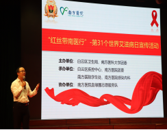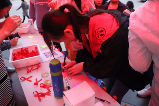 在第31个世界艾滋病日之际,南方医院感染内科在白云区疾控中心的指导下,联合校团委、院团委及学生处,共同举办了红丝带南医行的宣传活动。活动中所有参与者胸前佩戴红丝带,在祝愿墙上为艾滋病人送去暖暖的祝福。
