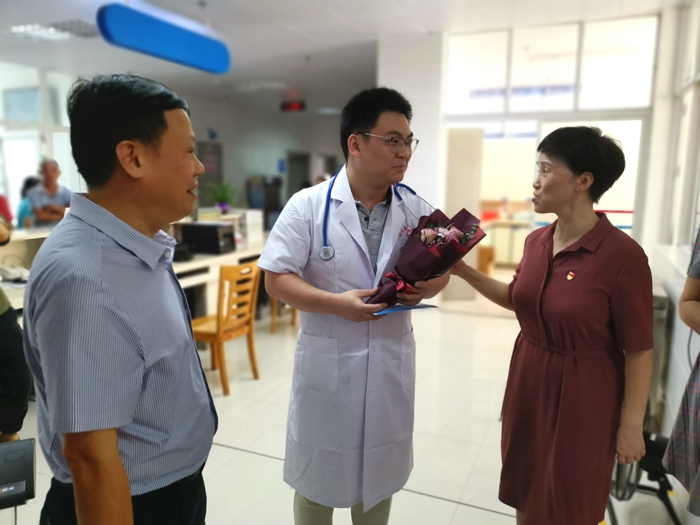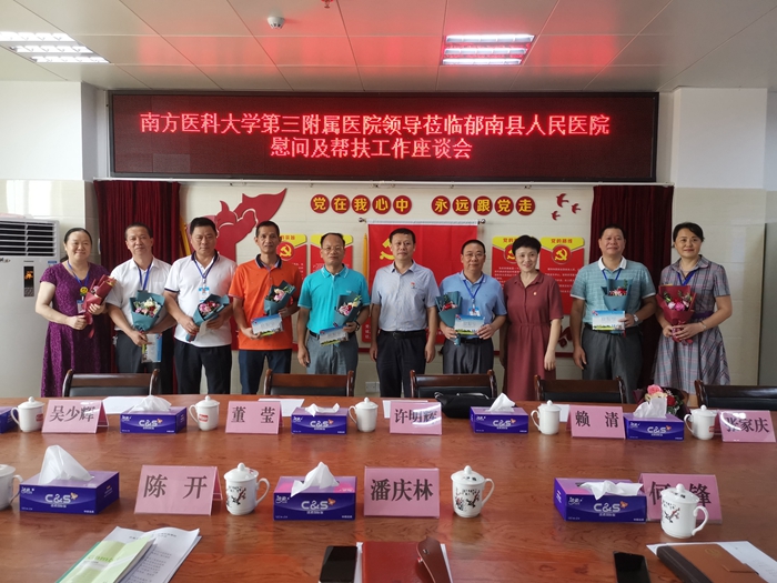 第二个“中国医师节”即将来临之际,8月8日上午,南医三院党委书记许明辉、党委副书记赖清一行赴郁南县人民医院慰问帮扶专家,郁南县副县长潘庆林、卫生健康局局长陈开、郁南县人民医院院长何锋以及12名帮扶专家参加了此次慰问活动。