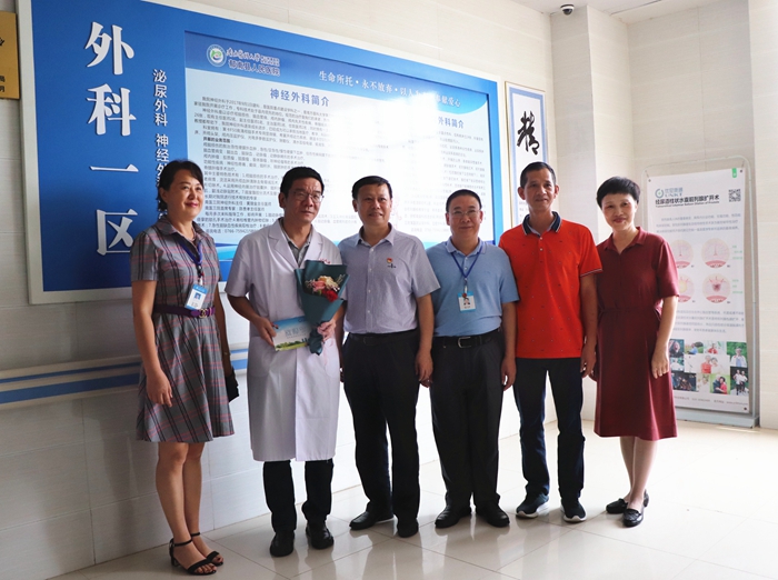 许明辉代表医院党委对帮扶专家以及郁南县人民医院的医务工作者表示亲切慰问,并对帮扶工作给予了充分肯定。他强调,各位帮扶专家一是要坚决落实好省委省政府的相关要求,结合当地实际情况,做到“精准帮扶”,把“真功夫”带到郁南县人民医院,让当地的群众能看好病;二是要在人才培养上下功夫,大力开展新业务、新技术,变“输血”为“造血”,培养一支带不走的医疗技术骨干,切实解决当地百姓“看病难”的问题。要弘扬“敬佑生命,救死扶伤,甘于奉献,大爱无疆”的职业精神,做到不忘初心,造福一方;三是要服从医院的管理,严格遵守当地医院的各项规章制度,努力工作,不辜负双方医院对专家的期望。