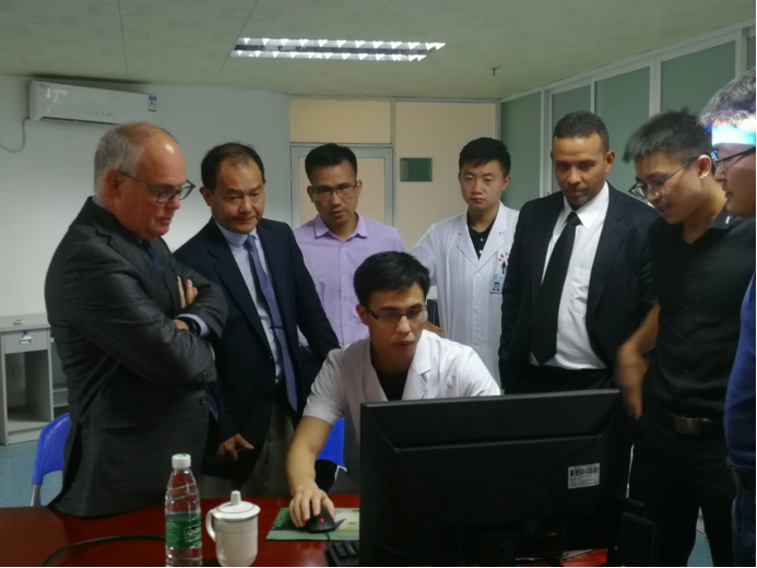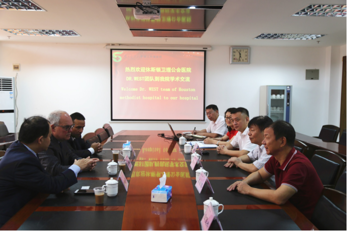 当天上午,美国休斯敦卫理公会医院Dr.West团队与五附院进行了座谈,院领导李绍波、邹小明、钱毅及医教部、急诊科负责人等参与座谈。Dr.West是美国休斯敦卫理公会医院神经脊柱科主任、全美知名的神经脊柱科专家。今年3月份,五附院脊柱外科主任梁必如到美国休斯敦卫理公会医院访学,此次Dr.West团队应邀到五附院开展学术交流。