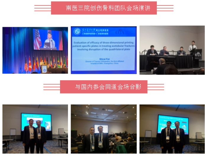 OTA成立于1984年,每年举行一次年会,代表了国际骨科创伤顶级水平,中国骨科创伤在OTA年会上鲜有发声。本次大会,三附院创伤骨科共有2篇论文被大会录用为大会发言,多篇获得壁报交流。创伤骨科樊仕才、麦奇光在大会主会场和专题分会场分别就“Internal Fixation of Acetabular Fractures in an Older Population Using the Lateral-Rectus Approach: Short-Term Outcomes of a Retrospective Study”、“Evaluation of Efficacy of Three-Dimensional Printing Patient-Specific Plates in Treating Acetabular Fractures Involving Disruption of the Quadrilateral Plate”进行了精彩演讲,赢得了国际同行的充分肯定,充分展示了中国骨科创伤在骨盆、髋臼领域的先进水平。