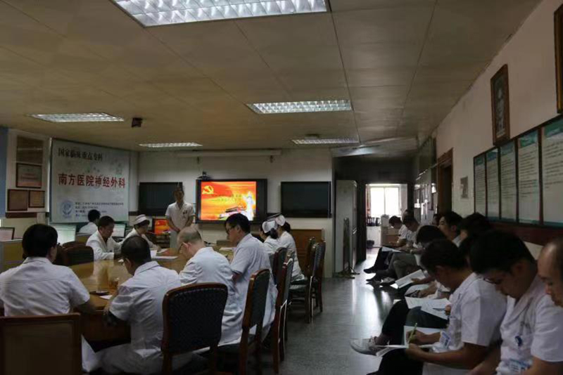 神经外科党总支书记漆松涛作了总结发言,他表示,张世超医生不仅一名优秀的神经外科医生,更是一个优秀的共产党员,作为医护工作者,我们的使命就是救死扶伤,为广大人民群众的健康保驾护航,我们将不忘初心使命,继续砥砺前行。