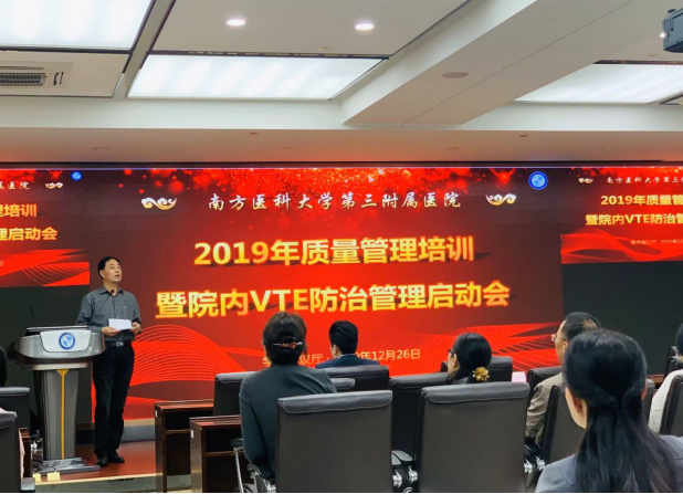 12月26日,第三附属医院举办了质量管理培训暨院内VTE防治管理启动会。副院长雷航及各科室主任、副主任、护士长、质控员参加会议,会议由副院长郭遂群主持。